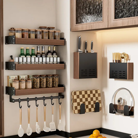 Etagère Murale Cuisine Bois et Métal Porte Epice