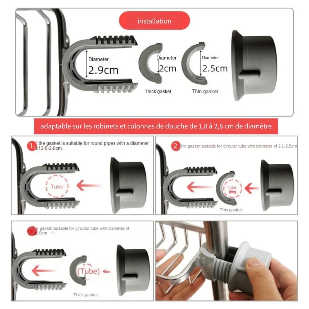• Ajustable pour toutes les barres de douche ou robinets