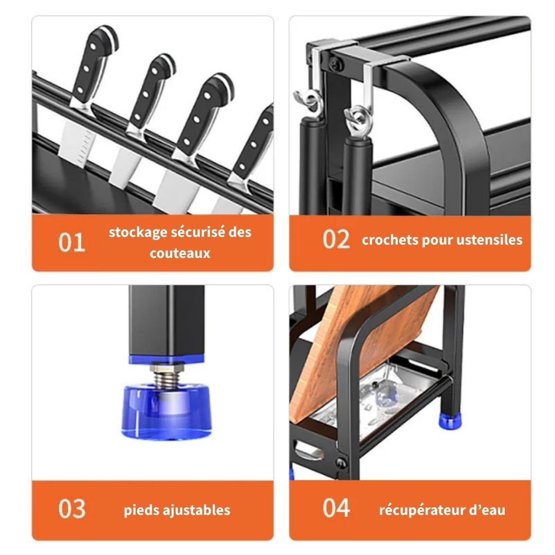 Découvrez une solution élégante et fonctionnelle pour ranger vos épices et bouteilles en toute simplicité. Avec notre support innovant, gardez tous vos condiments à portée de main et apportez une touche d'ordre à votre espace de cuisine. Sa conception astucieuse vous permettra de gagner du temps et de l'espace, tout en ajoutant une touche de sophistication à votre décor. Profitez d'une organisation optimale sans compromis sur le design et la praticité. Simplifiez votre quotidien et transformez votre cuisine en un espace harmonieux et accueillant. Optez pour la qualité et la fonctionnalité, adoptez notre support à épices et bouteilles dès aujourd'hui.